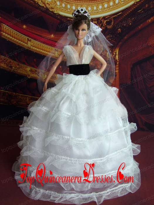 So Beautiful Princess Handmade White V-neck Wedding Dress For Barbie Doll