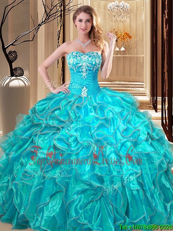 Sophisticated Aqua Blue Sleeveless Organza Lace Up Quinceanera Gown for Military Ball and Sweet 16 and Quinceanera