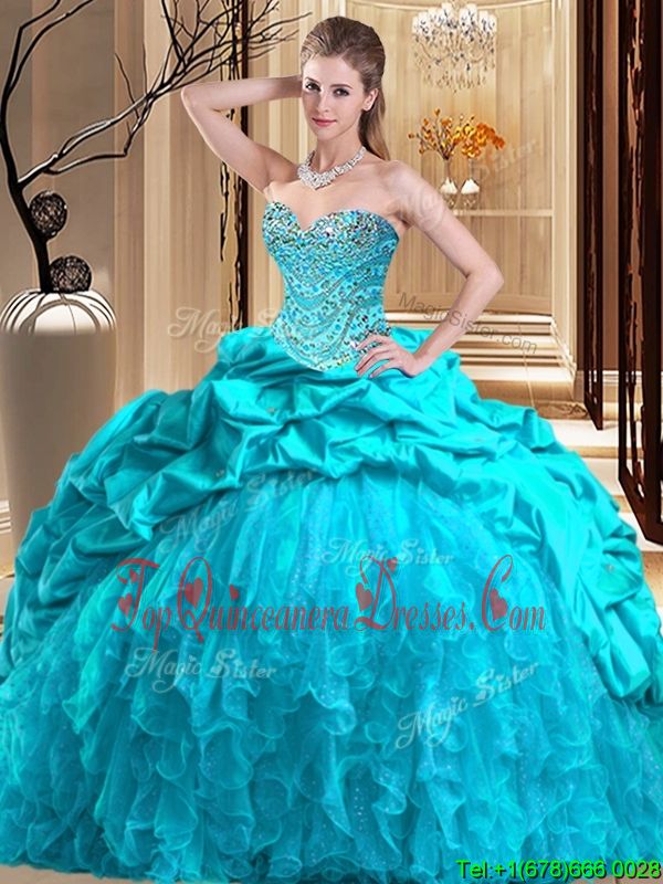 Sophisticated Aqua Blue Sweet 16 Dress Sweetheart Sleeveless Brush Train Lace Up