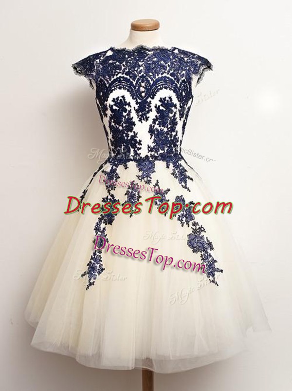 Sophisticated Blue And White A-line Appliques Dama Dress for Quinceanera Lace Up Tulle Sleeveless Mini Length