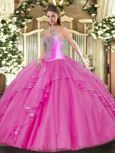 Sophisticated Fuchsia Tulle Lace Up Sweetheart Sleeveless Floor Length Vestidos de Quinceanera Beading and Ruffles