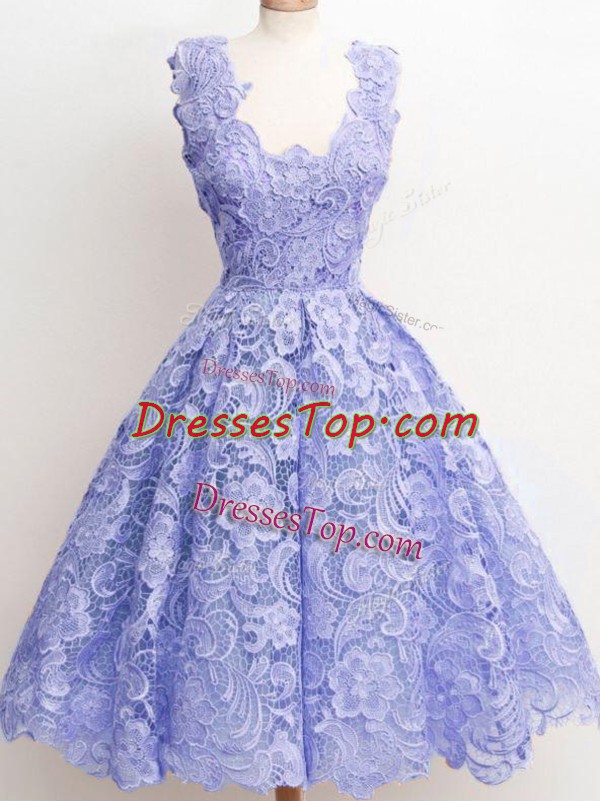 Sophisticated Lavender Lace Zipper Straps Sleeveless Knee Length Damas Dress Lace