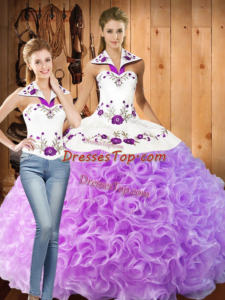 Sophisticated Lilac Fabric With Rolling Flowers Lace Up Ball Gown Prom Dress Sleeveless Floor Length Embroidery