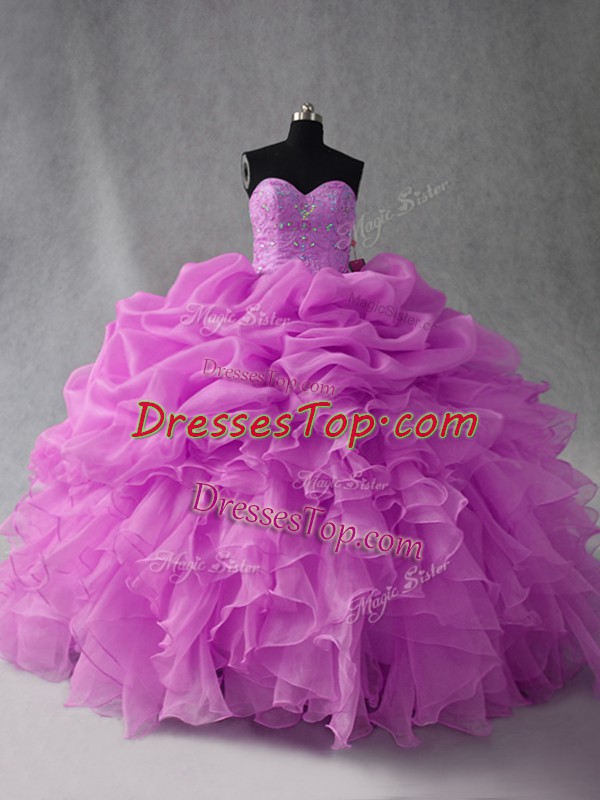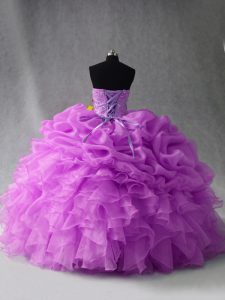 Sophisticated Lilac Lace Up Sweetheart Beading and Ruffles and Pick Ups Ball Gown Prom Dress Organza Sleeveless