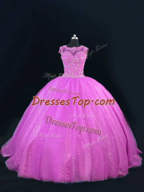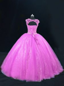 Sophisticated Lilac Scoop Lace Up Beading and Lace 15 Quinceanera Dress Sleeveless