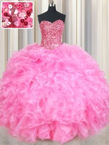 Sophisticated Organza Sleeveless Floor Length Quinceanera Gowns and Beading and Ruffles and Sequins