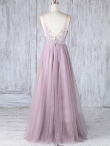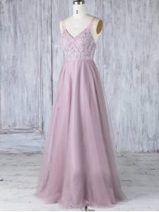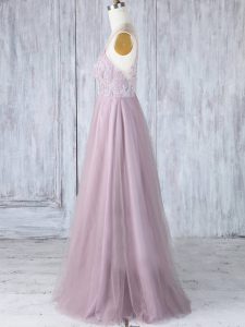 Sophisticated Pink Sleeveless Lace Floor Length Quinceanera Court Dresses
