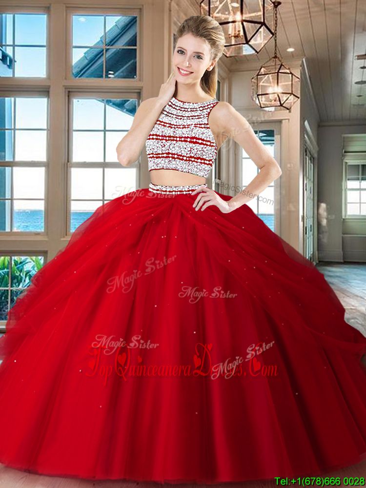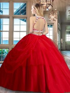 Sophisticated Scoop Red Backless Quinceanera Dress Beading and Pick Ups Sleeveless Floor Length