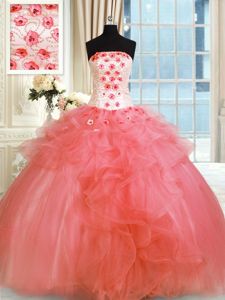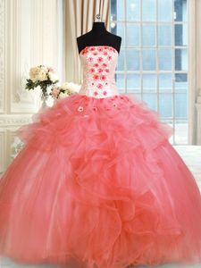 Sophisticated Sleeveless Lace Up Floor Length Pick Ups and Hand Made Flower Quinceanera Dress