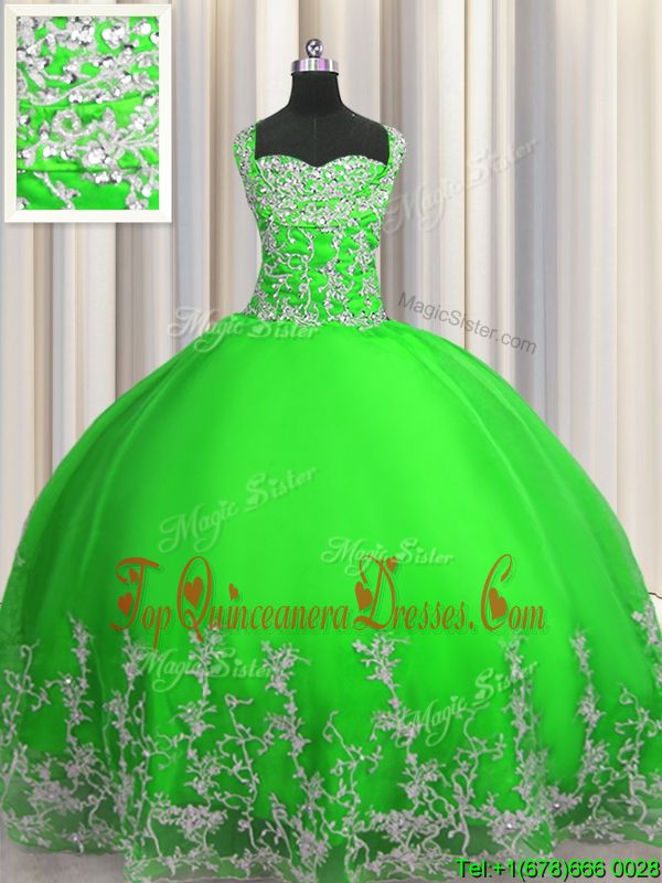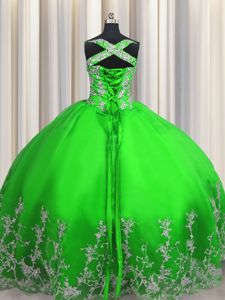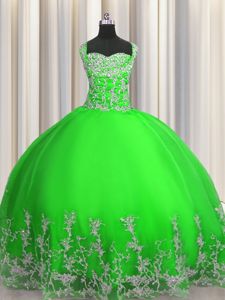 Sophisticated Straps Sleeveless Lace Up Sweet 16 Quinceanera Dress Green Tulle