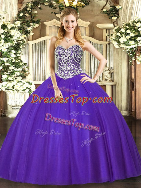 Sophisticated Sweetheart Sleeveless Lace Up 15 Quinceanera Dress Purple Tulle