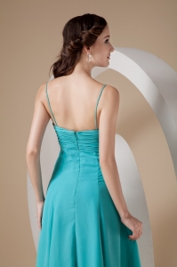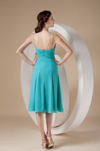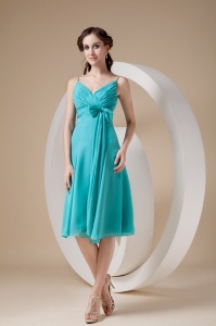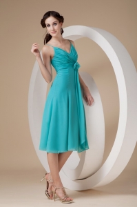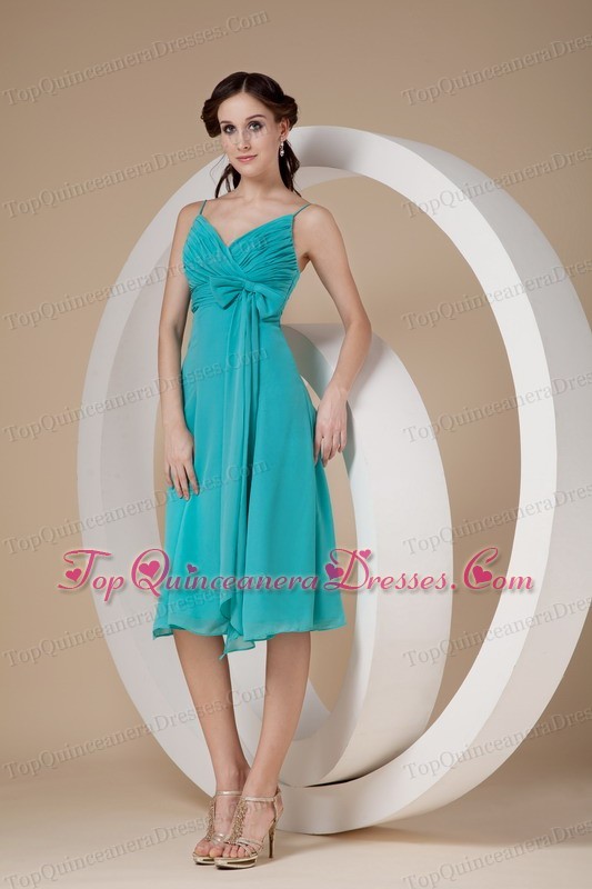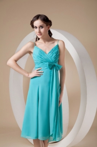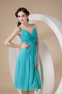 Spaghetti Straps Dama Dress Turquoise Knee-length Chiffon Bow