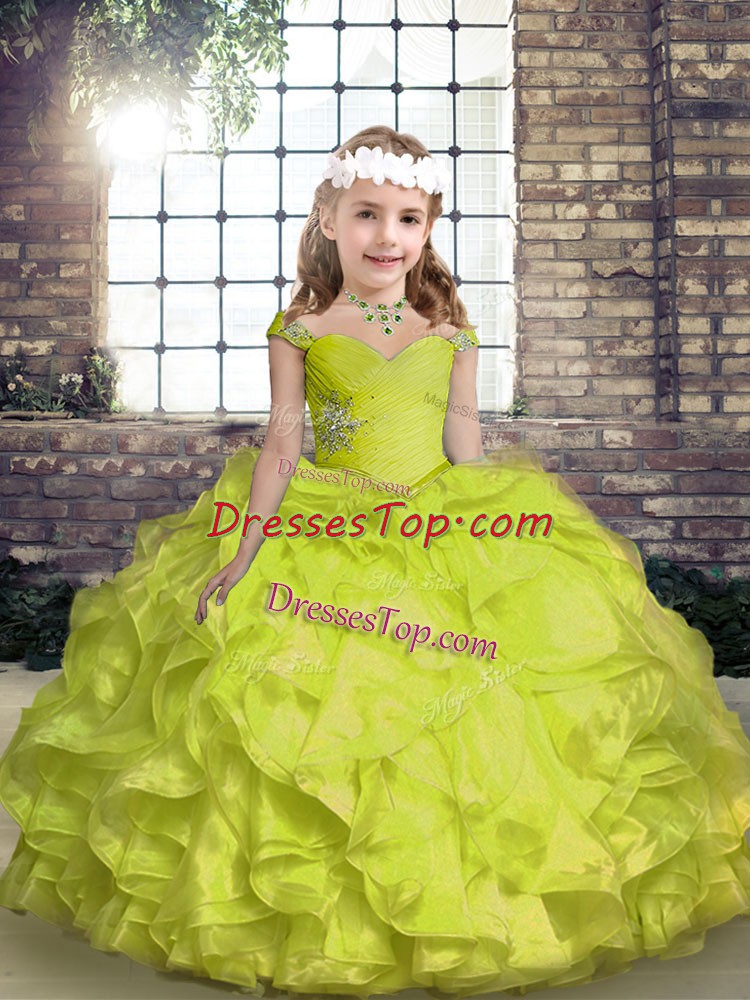 Spaghetti Straps Sleeveless Organza Little Girls Pageant Dress Wholesale Beading and Ruffles and Ruching Lace Up