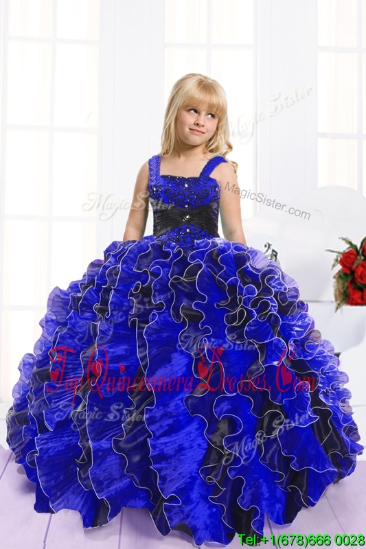 Spaghetti Straps Sleeveless Organza Pageant Gowns Beading and Ruffles Lace Up