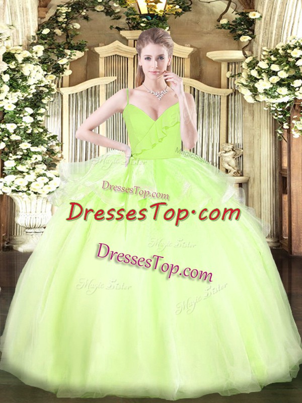 Spaghetti Straps Sleeveless Organza Sweet 16 Dress Ruffles Zipper