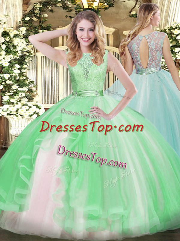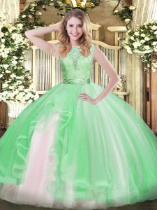 Spectacular Apple Green Ball Gowns Lace and Ruffles Sweet 16 Dress Backless Organza Sleeveless Floor Length
