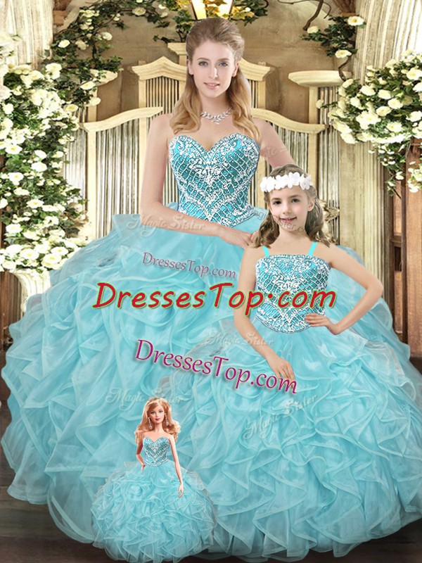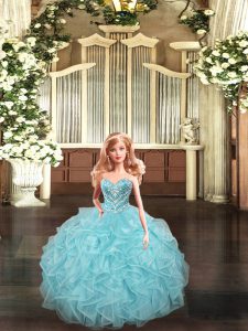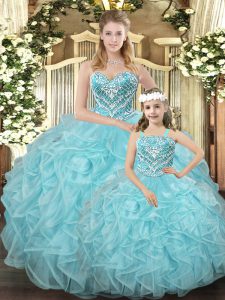 Spectacular Ball Gowns Quince Ball Gowns Aqua Blue Sweetheart Organza Sleeveless Floor Length Lace Up