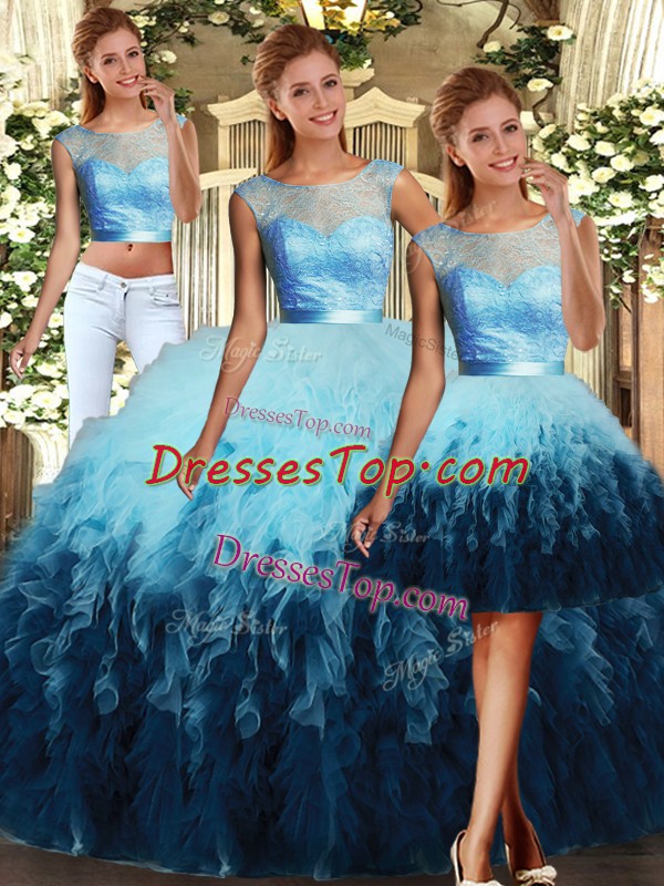 Spectacular Multi-color Scoop Neckline Lace and Ruffles Sweet 16 Dresses Sleeveless Lace Up