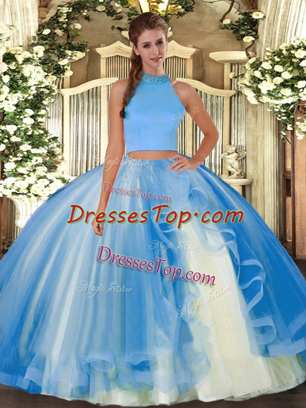 Spectacular Sleeveless Backless Floor Length Beading and Ruffles Quince Ball Gowns
