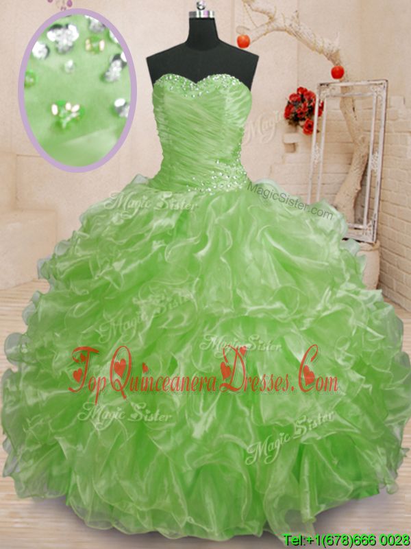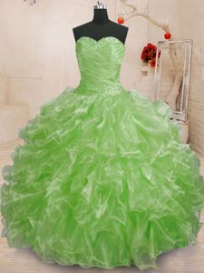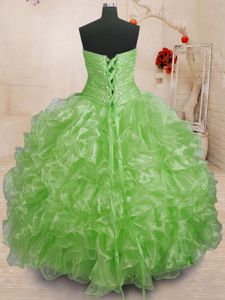 Spectacular Sleeveless Lace Up Floor Length Beading and Ruffles Quince Ball Gowns