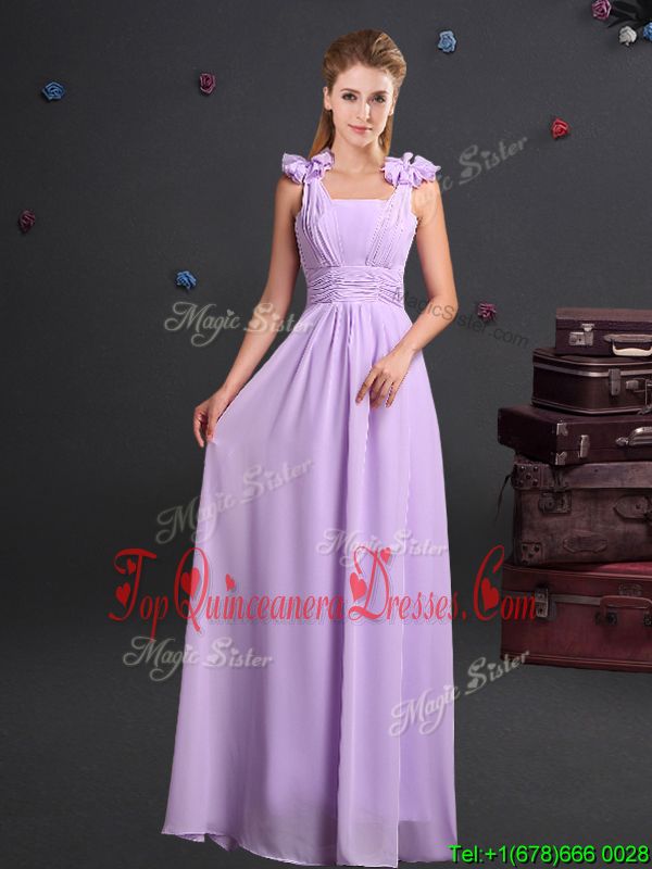Spectacular Straps Sleeveless Zipper Vestidos de Damas Lavender Chiffon