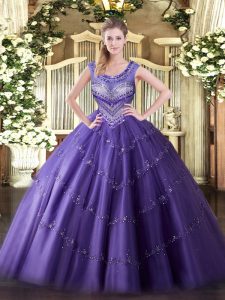 Spectacular Tulle Scoop Sleeveless Lace Up Beading and Appliques Ball Gown Prom Dress in Purple