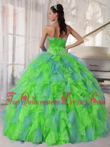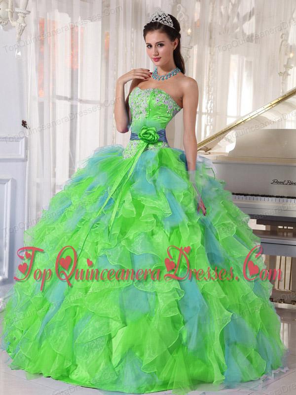 Spring Green and Blue Organza Appliques and Ruffles Quinceanera Dress