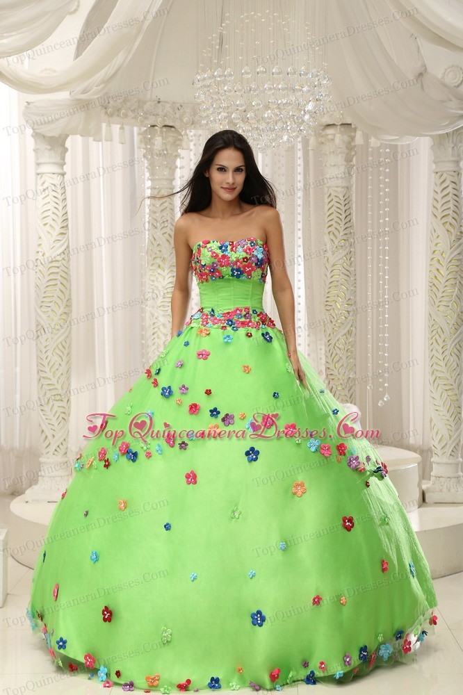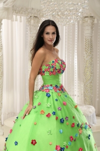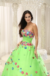 Spring Green Ball Gown 2013 Quninceaera Gown Appliques Bodice
