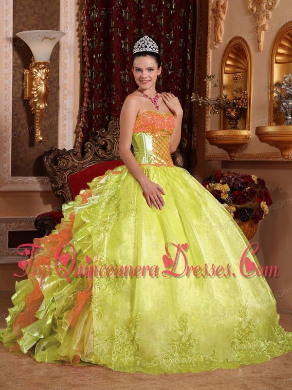 Spring Green Ball Gown Strapless Floor-length Organza Embroidery Couture Quinceanera Dresses