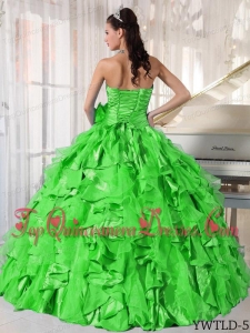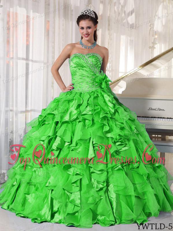 Spring Green Ball Gown Sweetheart Floor-length Organza Beading Quinceanera Dress