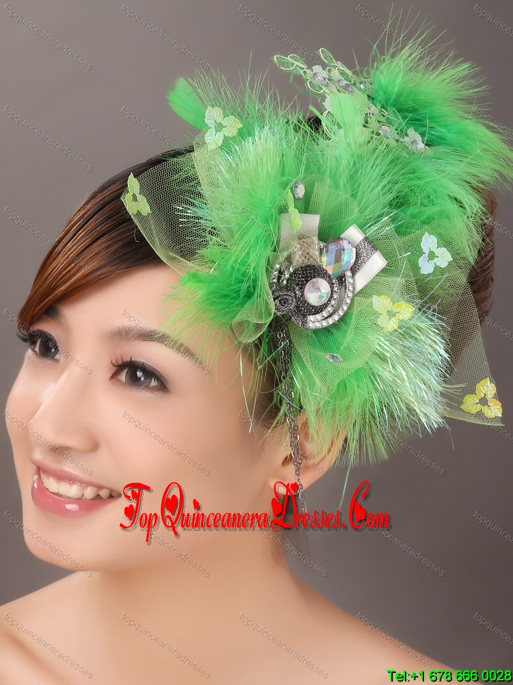 Spring Green Rhinestone Special Occasion Fascinators