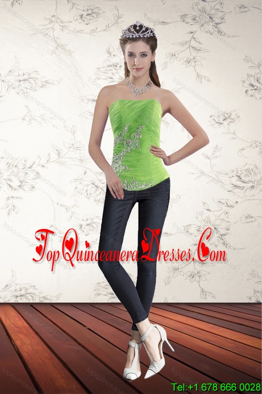 Spring Green Strapless 2015 Corset Dress with Ruffles and Beading
