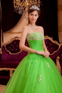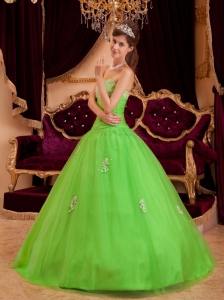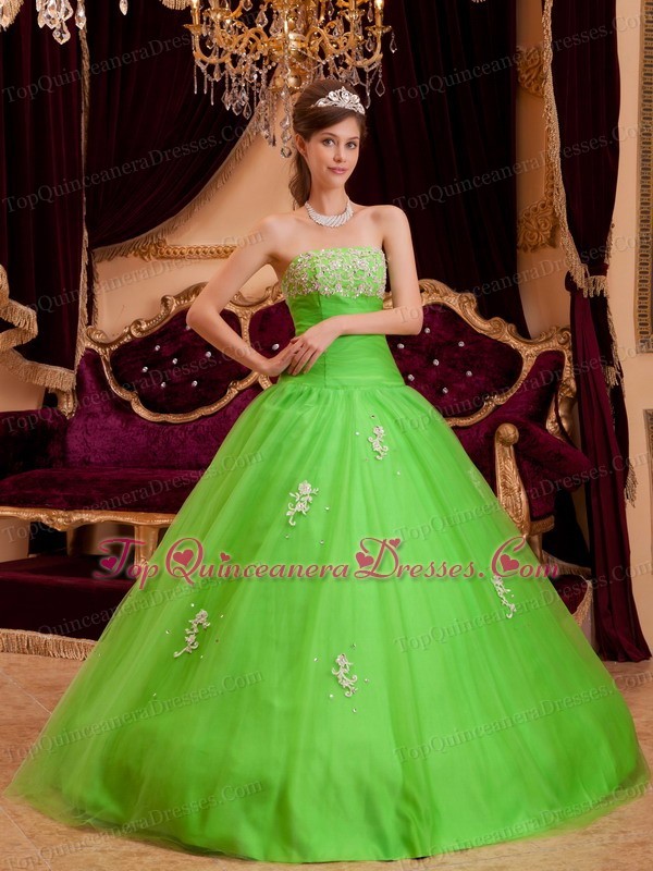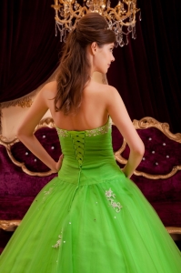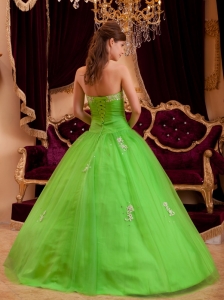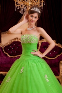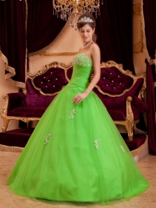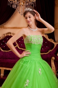Spring Green Strapless Appliques A-line Quinceanera Dress