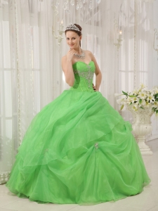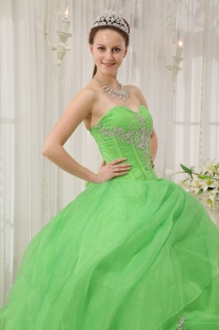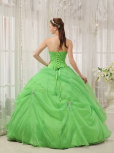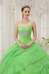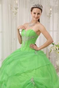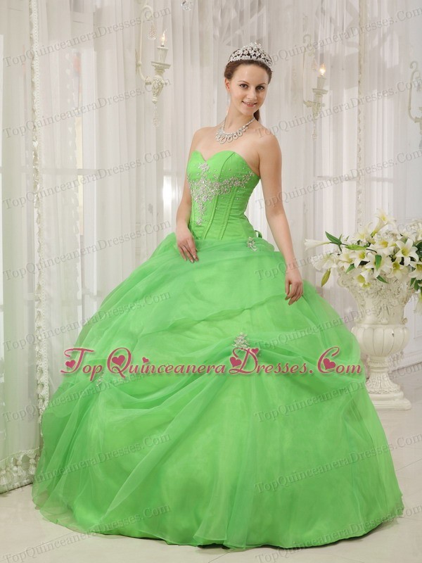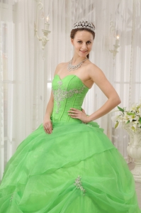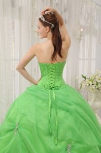 Spring Green Sweetheart Organza Appliques Quinceanera Dress