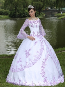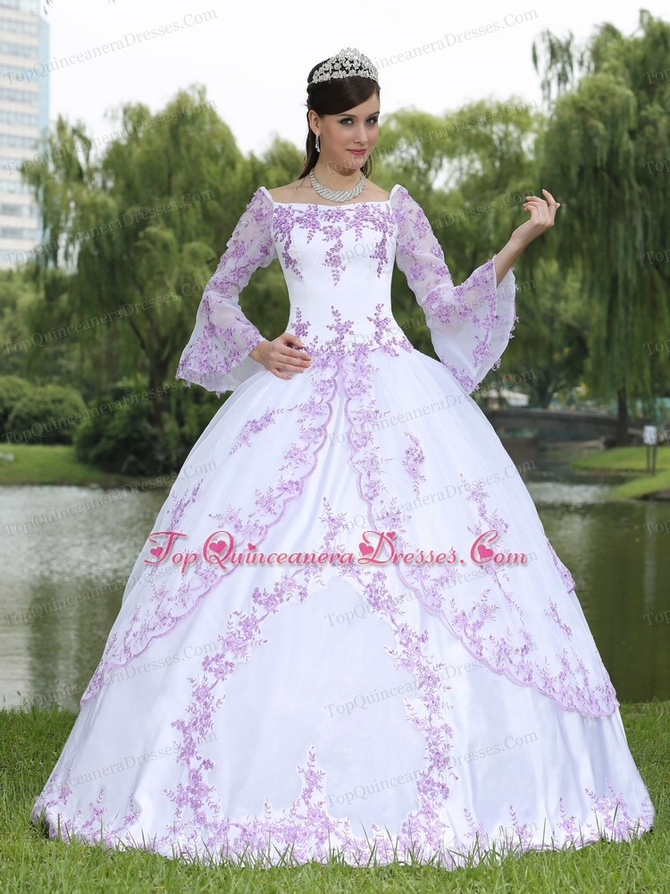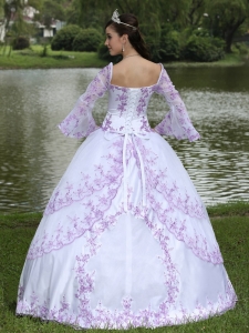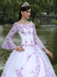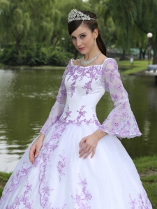 Square Long Sleeves Sweet 16 Party Dress Lilac Embroidery
