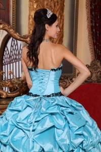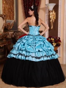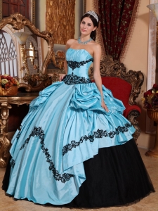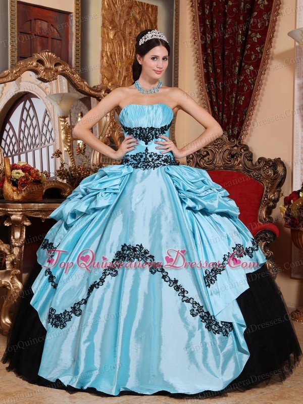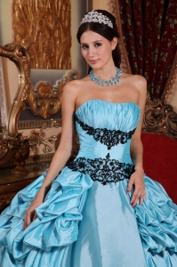 Strapless Appliques Baby Blue and Black Sweet 16 Dress