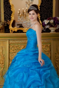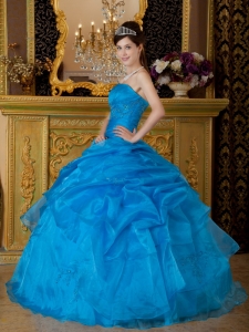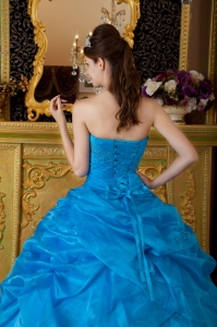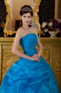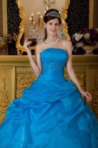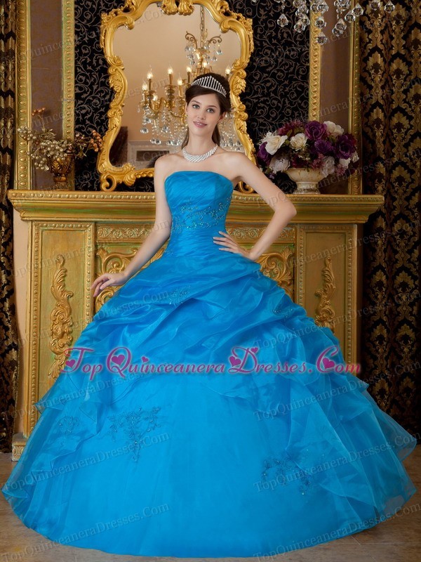Strapless Appliques Pick-ups Sky Blue Quinceanera Dress