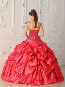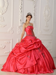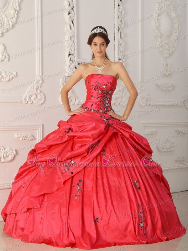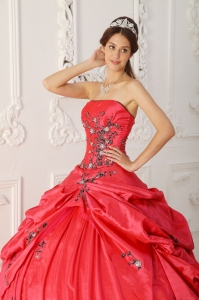 Strapless Appliques Red Pick-ups Quinceanera Dress
