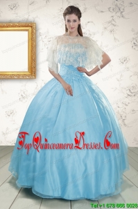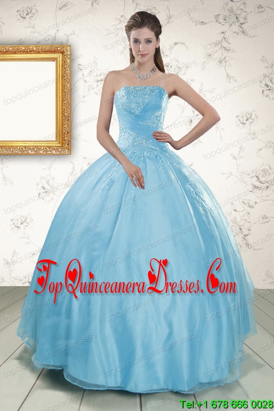 Strapless Beading 2015 Pretty Quinceanera Dress in Baby Blue