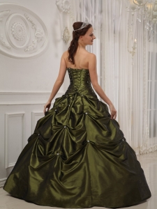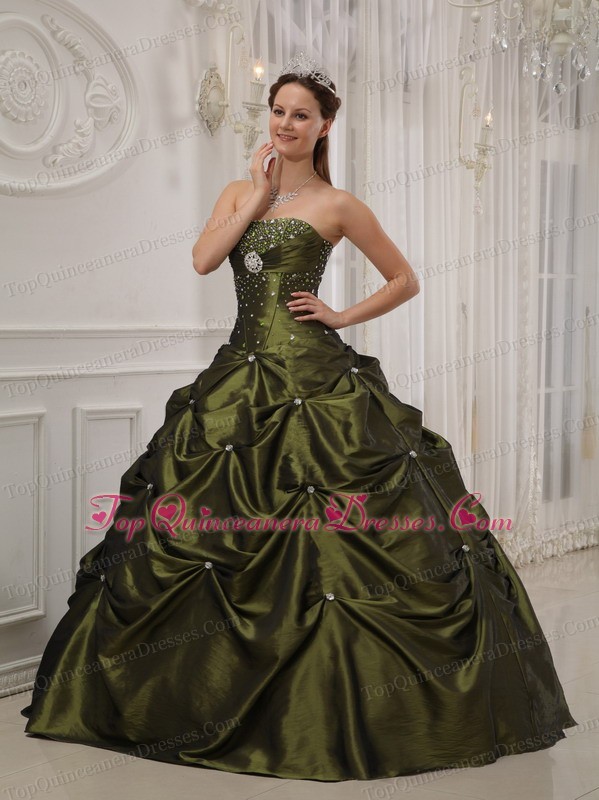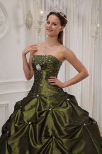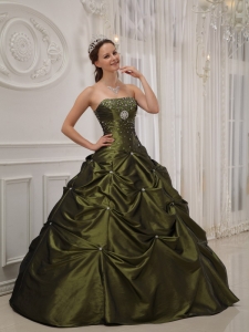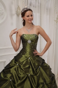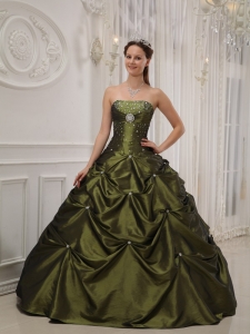 Strapless Beading Olive Green Quinceanera Dress Pick-ups