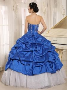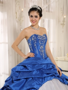 Strapless Blue and White Sweet 16 Dress Embroidery Pick-ups