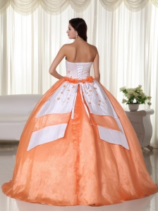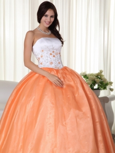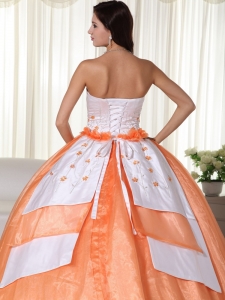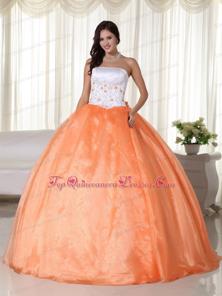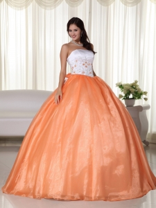 Strapless Orange Ball Gown Organza Quinceanera Dress