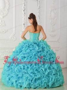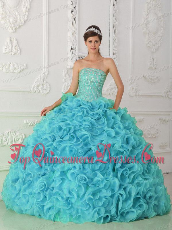 Strapless Organza Beading Ball Gown Beautiful Quinceanera Dresses in Blue