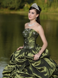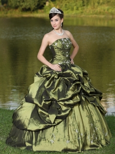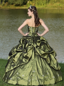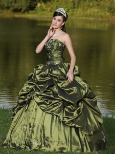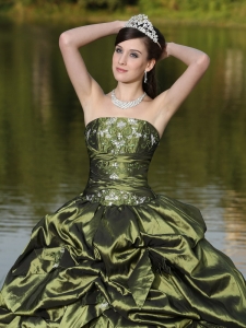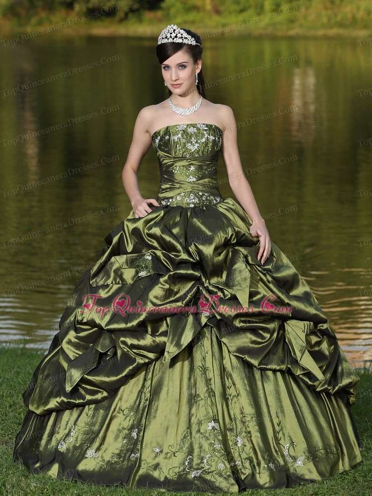 Strapless Quinceanera Dress Beaded Embroidery Olive Green