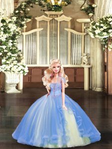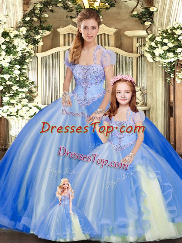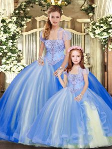 Strapless Sleeveless Lace Up Quince Ball Gowns Blue Tulle
