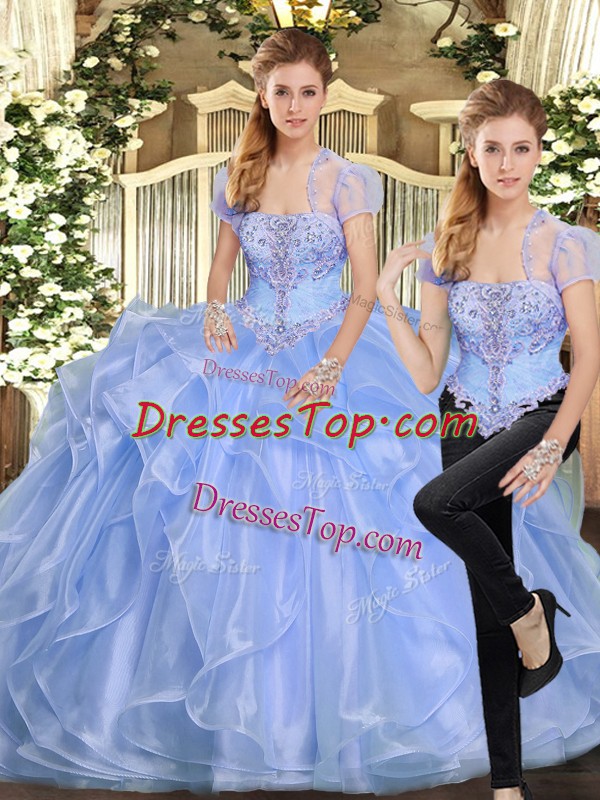 Strapless Sleeveless Organza Quince Ball Gowns Beading and Ruffles Lace Up