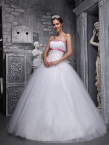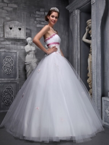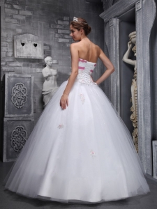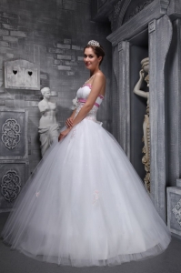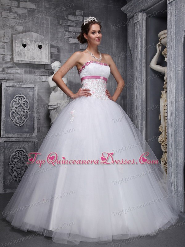 Strapless White Beading and Appliques Tulle Sweet 16 Dress