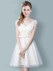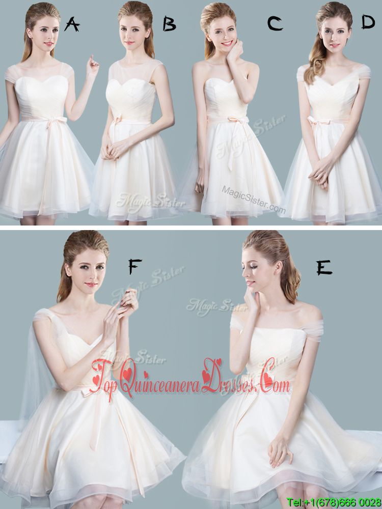 Straps Cap Sleeves Zipper Dama Dress for Quinceanera Champagne Tulle