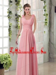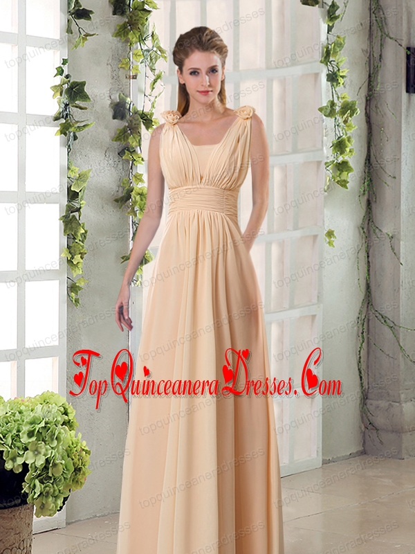 Straps Empire Ruching Hand Made Flowers 2015 Dama Dresses