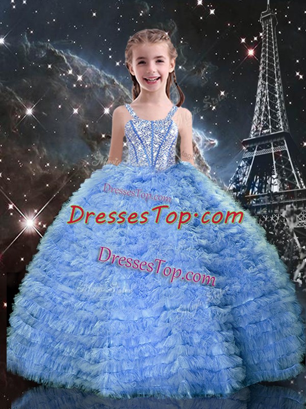 Straps Sleeveless Lace Up Glitz Pageant Dress Baby Blue Tulle